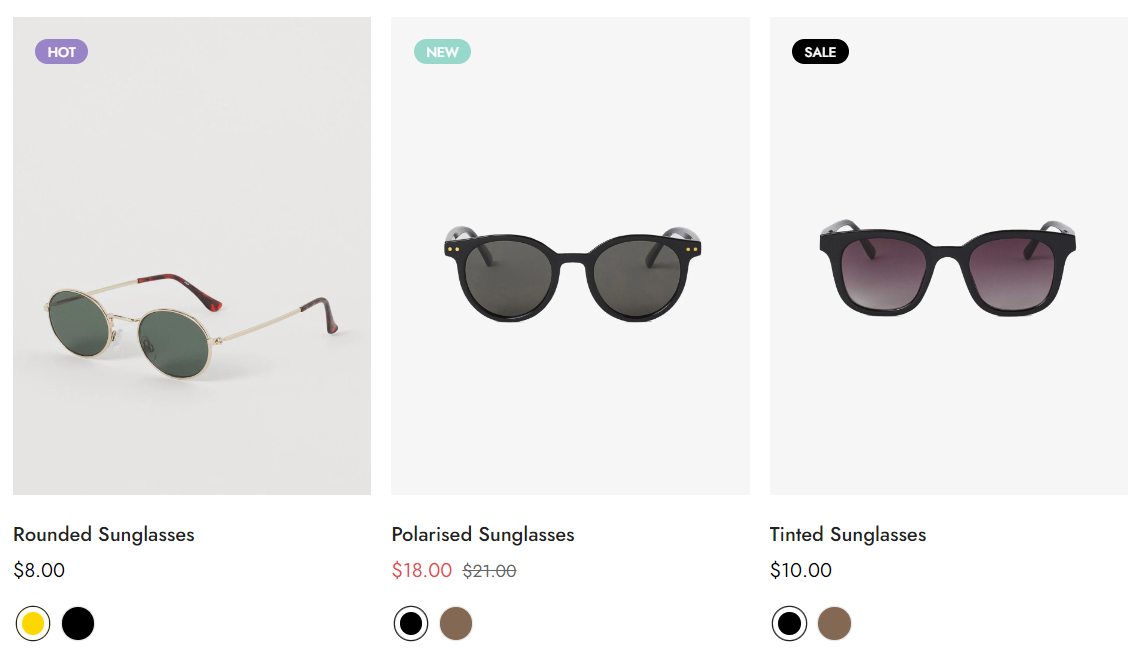 3. Sold out badge: Appears when the product variant is out of stock.